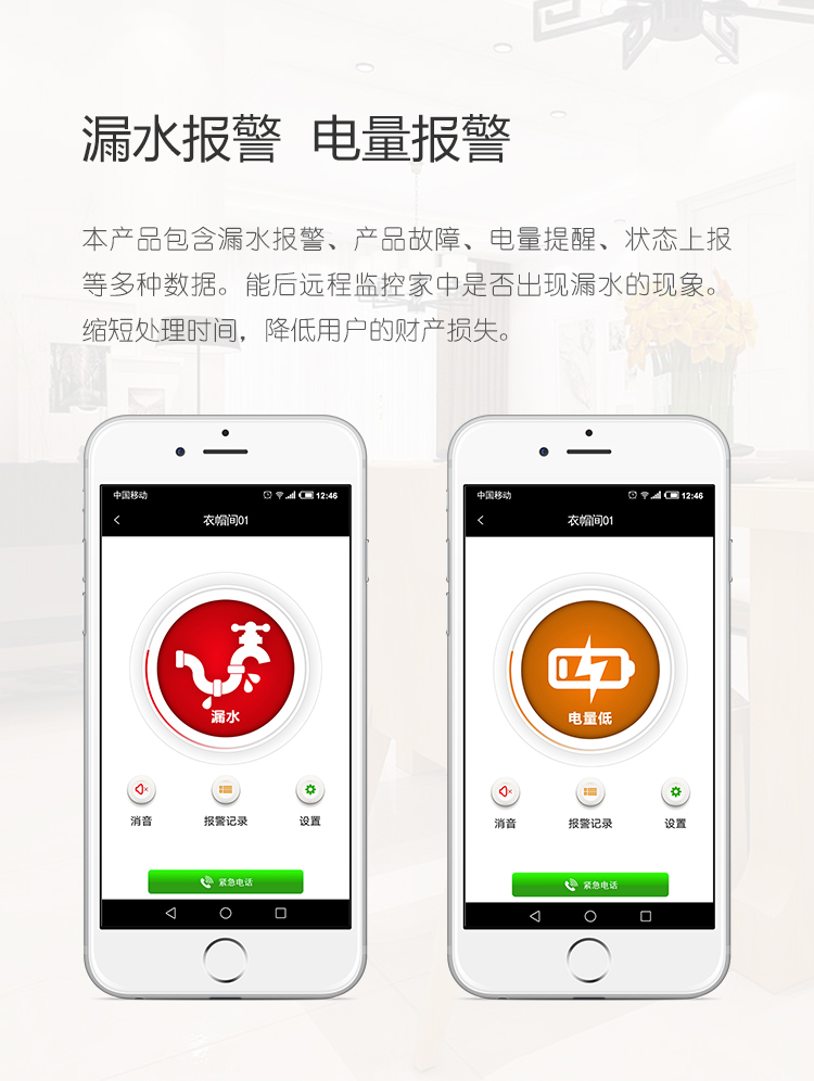 Product Description:本款WIFI型无线漏水探测报警器,防水等级达到IP67,可在5米深水下正常工作。采用家用无线网络传输方式,触控操作,可充电,可远程发送报警数据到手机APP,报警信息到手机,语音报警灯功能
